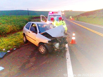 A Polícia Rodoviária Federal (PRF) atendeu, um grave sinistro de trânsito do tipo colisão frontal no km 23 da BR-369, no município de Cambará, no norte do Paraná. O trecho onde ocorreu o acidente possui sinalização horizontal e vertical proibindo ultrapassagens.