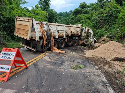 Conforme a síntese apurada, o conjunto veicular trafegava no sentido do Patrimônio Regina para o Patrimônio São Luiz quando, ao atingir o km 15 + 200 metros, o motorista perdeu o controle da direção. O caminhão se envolveu em um sinistro do tipo não identificado, vindo a tombar e parar no lado direito da via, conforme o sentido de tráfego.