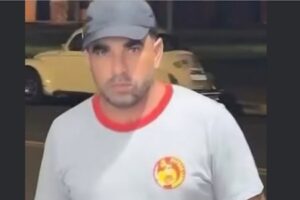 Diante dos fatos, foi dado voz de prisão ao autor, sendo necessário o uso de algemas, tendo em vista, ter feito uso