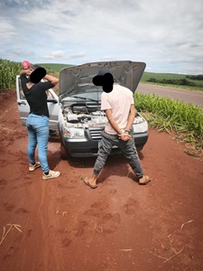 O veículo foi localizado com as características repassadas e abordado próximo ao km 559. Após consulta, foi confirmado que se tratava do automóvel furtado. No interior do carro estavam uma jovem, identificada pelas iniciais I.V.S., e um rapaz, identificado como L.G.D., ambos com 19 anos.