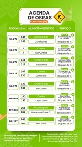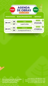 ótima sexta-feira. Tempo aberto em parte do lote de concessão da Via Araucária, sendo que em São Luiz do Purunã com neblina e Curitiba com garoa em alguns pontos. Nenhum trecho com intercorrências neste momento.🟢🛣
