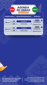 ☁️ Tempo nublado nesta quinta-feira em todo o trecho da Via Araucária.