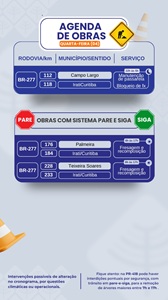 DESTAQUES DO DIA Via Araucária Informa: 4 de fevereiro de 2026 https://carmocosta.com.br/wp-content/uploads/2026/02/CARMO-COSTAAAAAAAAA.mp3 ☁️ Tempo nublado nesta quarta-feira em todo o trecho da Via Araucária. Em vários pontos, neblina. 🟢 Neste momento, sem interdição em nenhum ponto. 🛣️. 📞 Se precisar de ajuda, ligue para 08002770376. Você pode Gostar DESTAQUES DO DIA • ÓBITOS • São Pedro do Ivai Tráfico de drogas, desobediência e abordagem de suspeitos em São Pedro do Ivai 4 de fevereiro de 2026 A PALAVRA • DESTAQUES DO DIA A Importância da Palavra de Deus 4 de fevereiro de 2026 DESTAQUES DO DIA • HOROSCOPO Se Orienta pelos Astros: 4 de fevereiro de 2026 Adicionar Comentário Click here to post a comment Cancel replyCommentNome * E-mail * Site Salvar meus dados neste navegador para a próxima vez que eu comentar. Favor digite a resposta em dígitos:5 × 4 = PRF apreende mais de 1,6 tonelada de maconha escondida em carga de soja na BR-277, em Irati (PR) Denuncia de dois elementos armados em tráfico de drogas em São Pedro do Ivai Noticias mais Lidas DESTAQUES DO DIA • ÓBITOS Nota de Falecimento em Faxinal / Paulo da Silva Liduardo 20 Views DESTAQUES DO DIA PRF recupera carro furtado e apreende 20 mil maços de cigarros em Paranavaí 4 Views DESTAQUES DO DIA • ÓBITOS Nota de Falecimento de Barbosense atualmente morava em Maringá / Izabel Regina Ojeika da Cruz 17 Views DESTAQUES DO DIA Condenado por estupro é preso em Mandaguari 39 Views DESTAQUES DO DIA • ÓBITOS Nota de falecimento em Faxinal / Paulo da Silva 15 Views DESTAQUES DO DIA • JANDAIA DO SUL Programação paróquia São João Batista de Jandaia do Sul / Pároco Reinaldo Teruel 22 Views DESTAQUES DO DIA • JANDAIA DO SUL Motorista Capotou seu Veiculo entre Jandaia e Cambira / Morreu no local 124 Views DESTAQUES DO DIA • POLICIAL Ação conjunta da PRF e Receita Federal apreende três veículos carregados com eletrônicos em Cascavel 16 Views