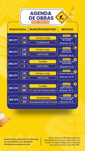 terça-feira com tempo bom em todo o trecho da Via Araucária. Sem interdições de momento
