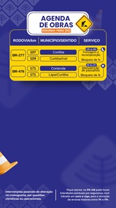 DESTAQUES DO DIA Via Araucária Informa: 2 de março de 2026 https://carmocosta.com.br/wp-content/uploads/2026/02/CARMO-COSTAAAAAAAAA-11.mp3 ☀️ Sol nesta segunda-feira em todo o trecho da Via Araucária. 🟢 Trânsito normal e sem obstruções. 📞 Se precisar de ajuda, ligue para 08002770376. Você pode Gostar DESTAQUES DO DIA • ÓBITOS Nota de Falecimento em Borrazópolis / Lourdes Fabiano R.P. de Souza 2 de março de 2026 DESTAQUES DO DIA • HOROSCOPO Se Orienta pelos Astros 2 de março de 2026 APUCARANA • DESTAQUES DO DIA • ÓBITOS Nota de Falecimento em Apucarana Sepultamento em Borrazópolis / Expedita Rosa de Souza Pereira 2 de março de 2026 Adicionar Comentário Click here to post a comment Cancel replyCommentNome * E-mail * Site Salvar meus dados neste navegador para a próxima vez que eu comentar. Favor digite a resposta em dígitos:14 + 19 = Nota de Falecimento em Mandaguari / Milton Barbosa A Importância da Palavra de Deus Noticias mais Lidas DESTAQUES DO DIA Para quem tem Alguma duvida a medida protetiva é apenas para Mulher contra Homem 16 Views DESTAQUES DO DIA • POLICIAL Mais de 280 kg de Cocaína entrado em Carreta foi na BR 277 30 Views DESTAQUES DO DIA Em Cambira um Caminhão deceu e quase acabou com o escritório do Carlinhos do Posto 48 Views DESTAQUES DO DIA • ÓBITOS Acidente na BR 277 tirou a vida de Douglas Elísio, morador de Roncador 22 Views DESTAQUES DO DIA • MANDAGUARÍ • ÓBITOS Policia Militar de Mandaguari Acionou o IML para recolher um Corpo que foi encontrado em uma residência 68 Views DESTAQUES DO DIA • POLICIAL Em menos de 12 horas, PRF apreende mais de 2000 unidades de medicamentos utilizados para emagrecimento em Guarapuava (PR) e Irati (PR) 11 Views DESTAQUES DO DIA PRF apreende haxixe e skunk ocultos em tanque de combustível na BR-487 12 Views DESTAQUES DO DIA Via Araucária Informa: 9 Views